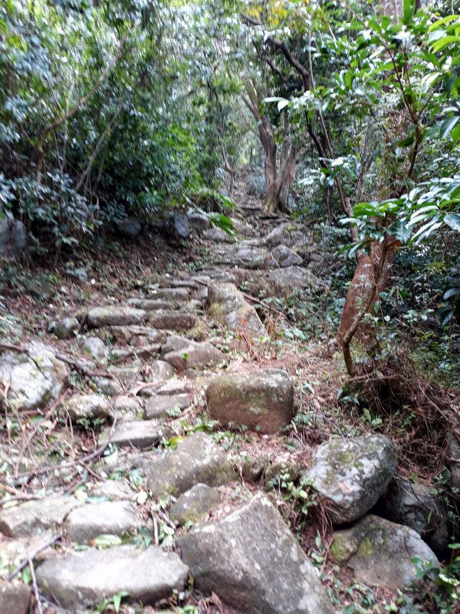 The first stage was from Mui Wo to Nam Sham, via the old path rather than the road. It was a nice walk, with a few ducking and stepping over loose branches. As I got to the top this it did involve me actually climbing through a fallen tree, and saw me on my hands and knees. Here are some photos for this stage